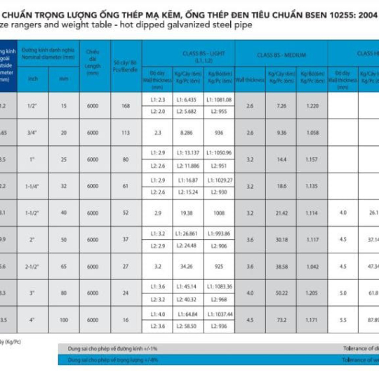 • Tiêu chuẩn BS EN 10255:2004 của Anh quốc