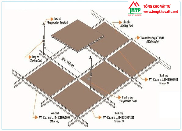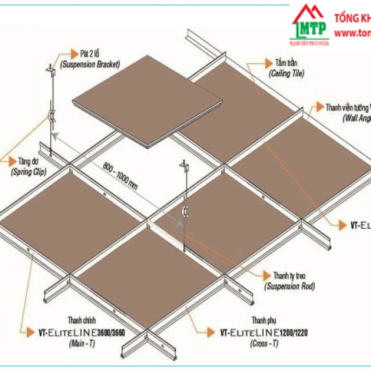 Hệ thống trần thả với tấm xi măng 3,5mm