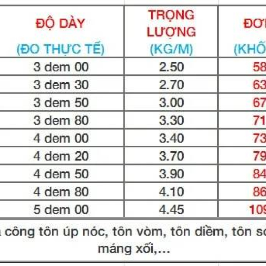 Dưới đây là bảng báo giá tham khảo từ Thép Tôn Thép Mạnh Tiến Phát. Giá tôn mạ kẽm phụ thuộc vào số lượng, quy cách và địa điểm giao hàng. Vui lòng liên hệ để nhận báo giá chính xác.