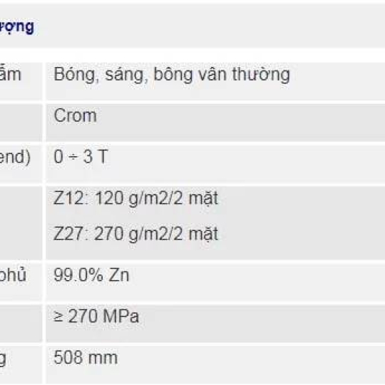 • Tiêu chuẩn: JIS G3302, BS EN 10346, AS 1397, ASTM A653-A653M
